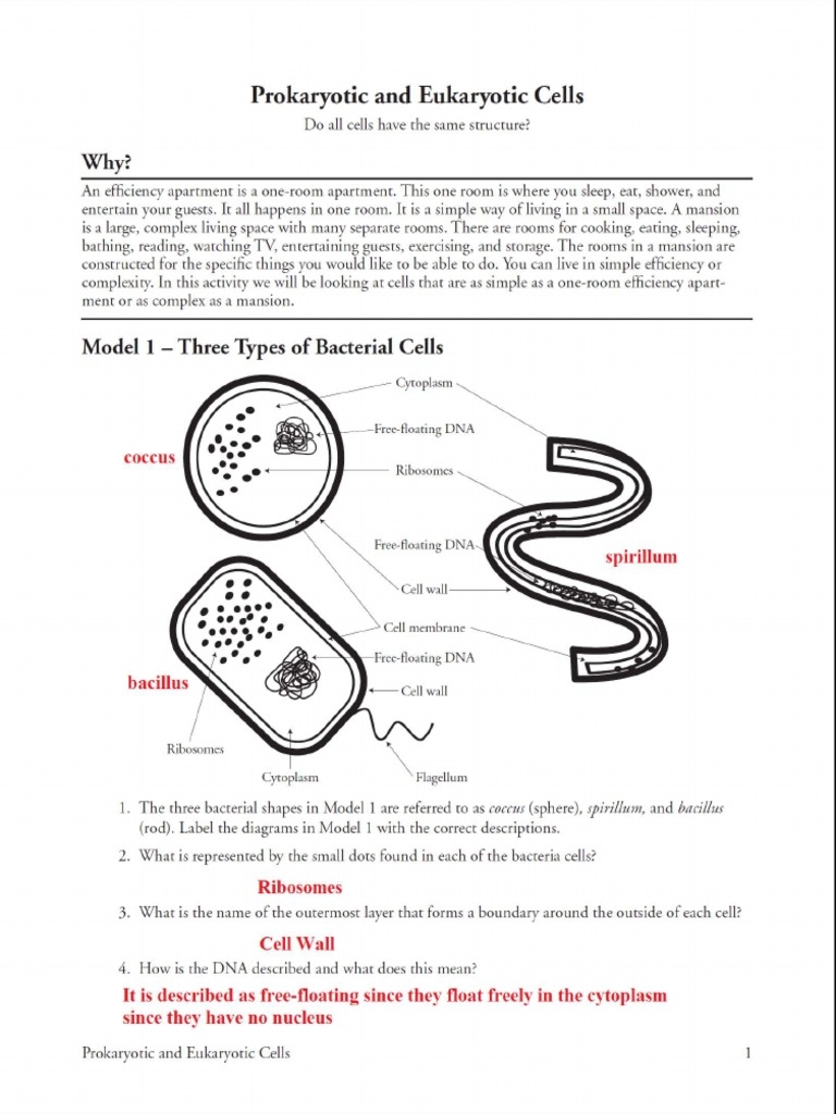 Another question on a worksheet might ask students to compare the sizes of prokaryotic and eukaryotic cells. Prokaryotic cells are generally smaller in size compared to eukaryotic cells. Students would need to know this information and be able to explain why the size difference exists, such as the presence of organelles in eukaryotic cells that require more space.