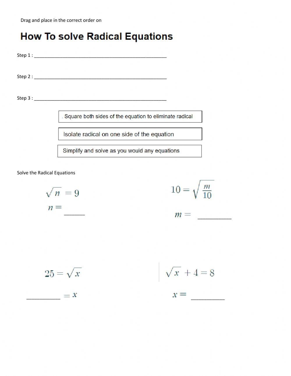 One type of problem that students may encounter on a radical equations worksheet is solving equations with multiple radicals. In these problems, students will need to isolate each radical term and square both sides to eliminate the radicals. This may involve multiple steps and careful attention to detail, but with practice, students can become more comfortable with solving these types of equations. Working through a variety of problems on a radical equations worksheet can help students build their confidence and improve their algebra skills.