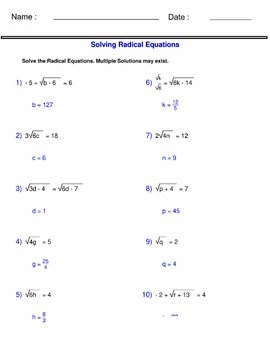 Radical equations can be tricky to solve, but with practice and understanding of the concepts, they can become easier to work with. A radical equation is an equation that contains a variable within a radical expression, such as a square root or cube root. These equations often involve isolating the radical term and squaring both sides to eliminate the radical. A radical equations worksheet can help students practice solving these types of equations and build confidence in their algebra skills.