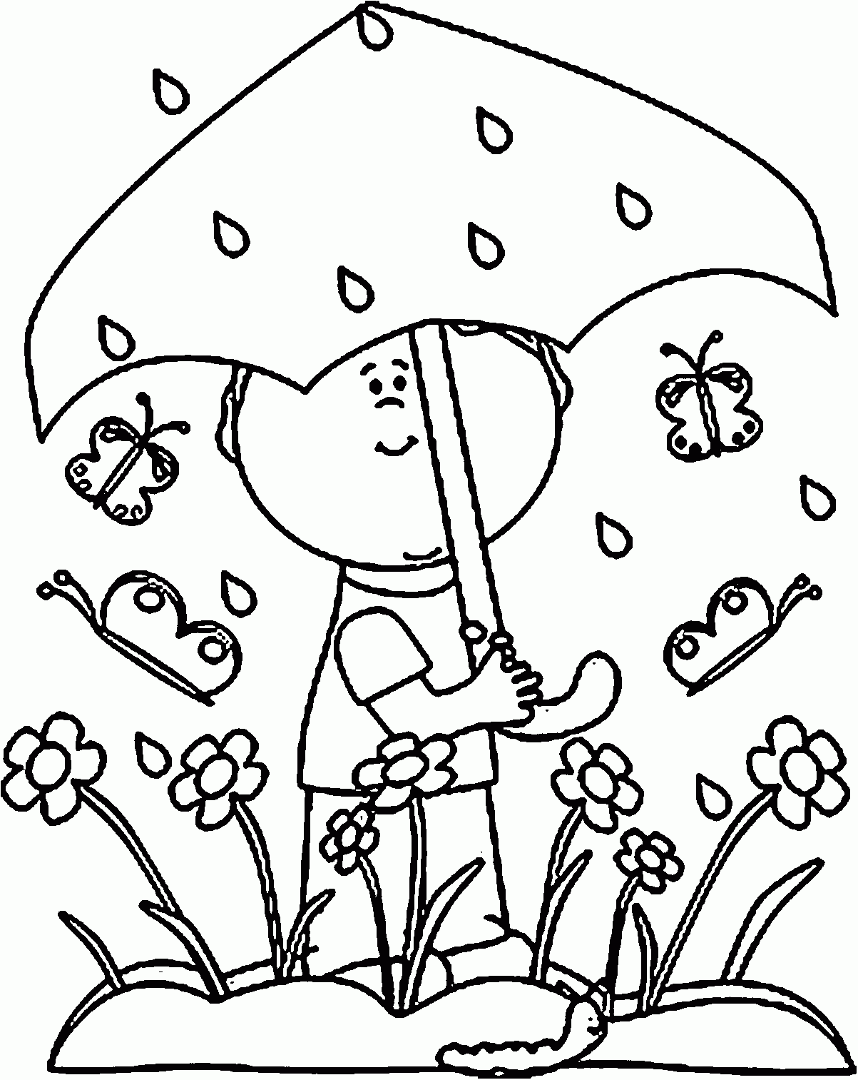 One popular rain coloring page features a cute cartoon character holding an umbrella, with raindrops falling all around. Kids can use their imagination to color the umbrella, the raindrops, and even add a rainbow in the background if they wish.
