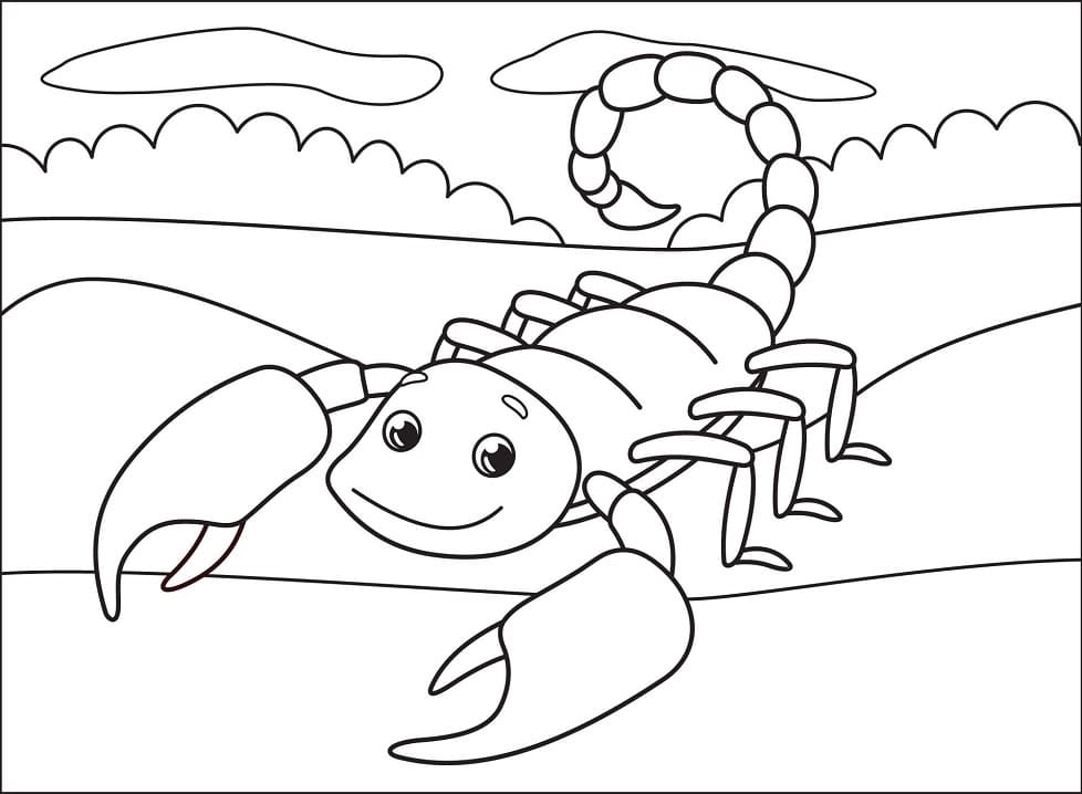 Another common design is a cartoon scorpion coloring page, which is perfect for younger children or those looking for a more whimsical take on these creatures. Cartoon scorpions are often depicted with exaggerated features and bright colors, making them both cute and entertaining to color.