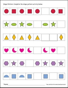 Another benefit of shape pattern worksheets is that they can be easily adapted to suit different learning levels. For younger children, simple patterns with fewer shapes can be used to build basic skills. As children progress, more complex patterns with a greater variety of shapes can be introduced to challenge their thinking and problem-solving abilities.