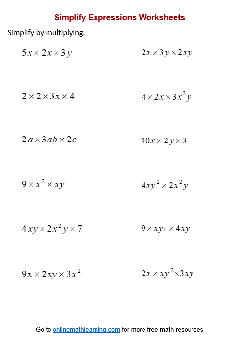 Additionally, simplify algebraic expressions worksheets can be a valuable resource for teachers to assess students’ understanding of algebraic concepts. By assigning these worksheets as homework or classwork, teachers can evaluate students’ proficiency in simplifying expressions and tailor their instruction to address any areas of difficulty. Worksheets can also serve as a tool for review and reinforcement, helping students solidify their understanding of algebraic principles.