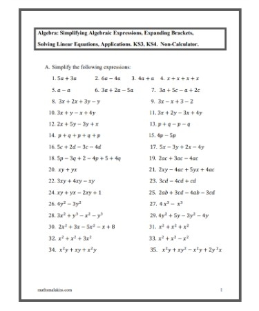In conclusion, a simplifying expressions worksheet PDF is a useful tool for students seeking to improve their algebraic skills. By offering structured practice problems, accessibility, and immediate feedback, these worksheets can enhance students’ understanding and proficiency in simplifying expressions. With consistent practice and utilization of these worksheets, students can master the skill of simplifying expressions and excel in their mathematical studies.