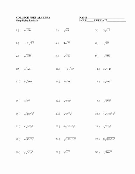When it comes to learning about radicals in mathematics, it can often be a challenging concept for students to grasp. However, using a simplifying radicals worksheet with answers PDF can help make the learning process much easier and more engaging. These worksheets provide students with the opportunity to practice simplifying radicals in a structured and organized manner, while also giving them the chance to check their work with the provided answers.