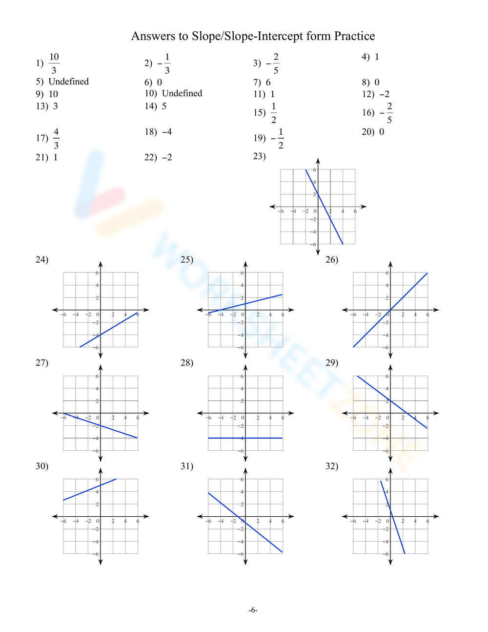 Download the Slope-Intercept Form Worksheet with Answers PDF
