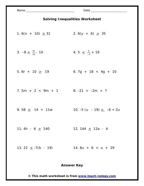 In conclusion, solving inequality worksheets are a valuable tool for practicing and mastering the concept of inequalities in math. By following a systematic approach and practicing regularly, students can improve their skills and build confidence in solving inequalities. Teachers can also use these worksheets to provide additional practice and support for students who may be struggling with this topic. Overall, inequality worksheets are a useful resource for anyone looking to improve their math skills and succeed in solving inequalities.