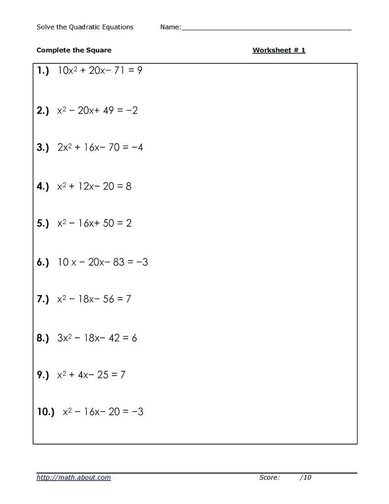 Solving Quadratic Equations Worksheet by Factoring
