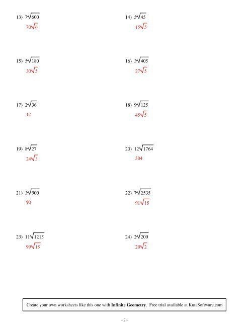 By practicing solving quadratics with square roots through worksheets and exercises, students can reinforce their understanding of algebraic concepts and improve their problem-solving skills. These worksheets can provide valuable practice in applying square roots to quadratic equations and help students develop their ability to solve complex mathematical problems. Additionally, working through these worksheets can build confidence and proficiency in algebra, setting students up for success in future math courses and exams.
