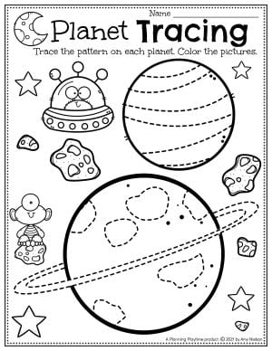 4. Tracing Activities: Tracing activities on space worksheets can help preschoolers practice their fine motor skills and hand coordination. Children can trace the shapes of planets, rockets, or astronauts, improving their pencil grip and control.